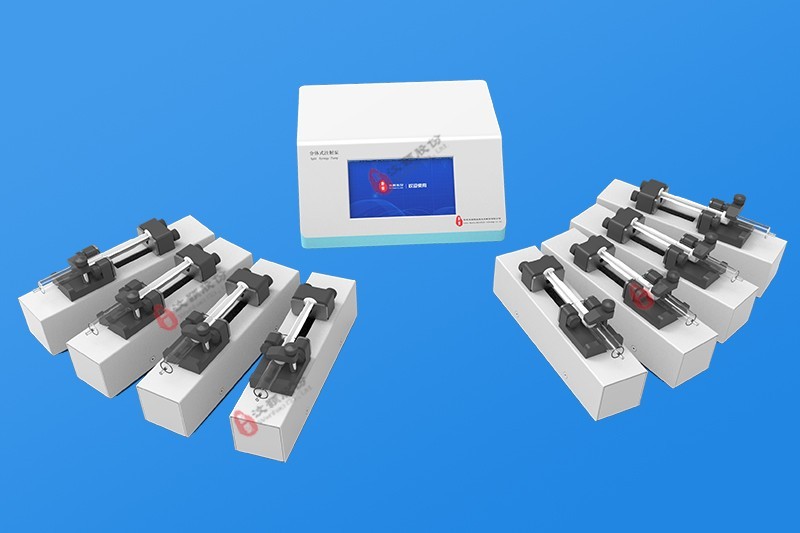 This equipment is a syringe pump that combines liquid injection and liquid absorption. It consists of a controller and multiple independent execution units (up to 8). Each execution unit can be used as an independent syringe pump, injecting or pumping liquid at different speeds. Easy to use and simple to operate. The parameter setting, modification and view of fluid control can be completed in the main interface of starting up. During the parameter input process, the model and inner diameter of the syringe can be selected directly from the list, or manually input, and then input other parameters ( Flow rate, flow rate, time, infusion type, etc.), the task can be suspended at any time during the work, and various parameters can be reset and executed immediately.